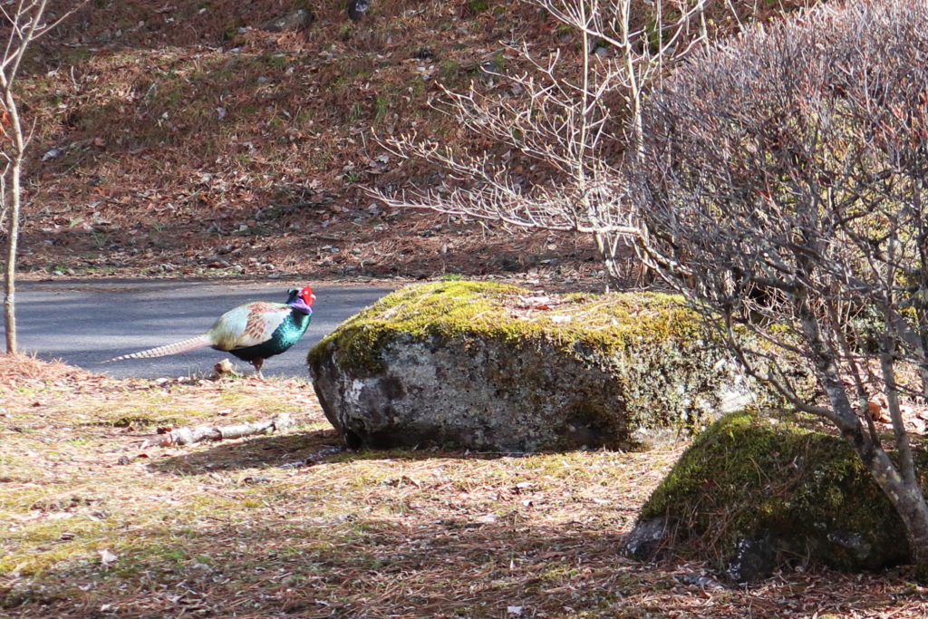 何人かで撮影を試みましたがあまりうまく撮れなかったため、写真は遠くから撮ったキジをトリミングしたものを載せています。